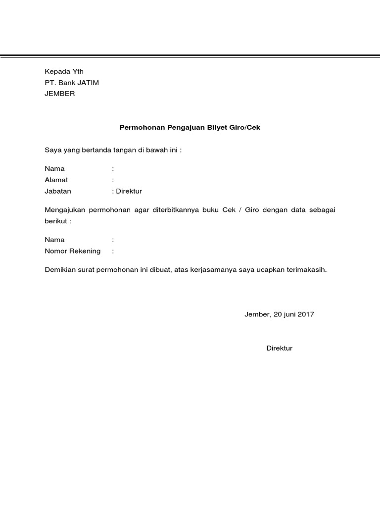 Surat Permohonan Bilyet Giro Atau Cek Pdf